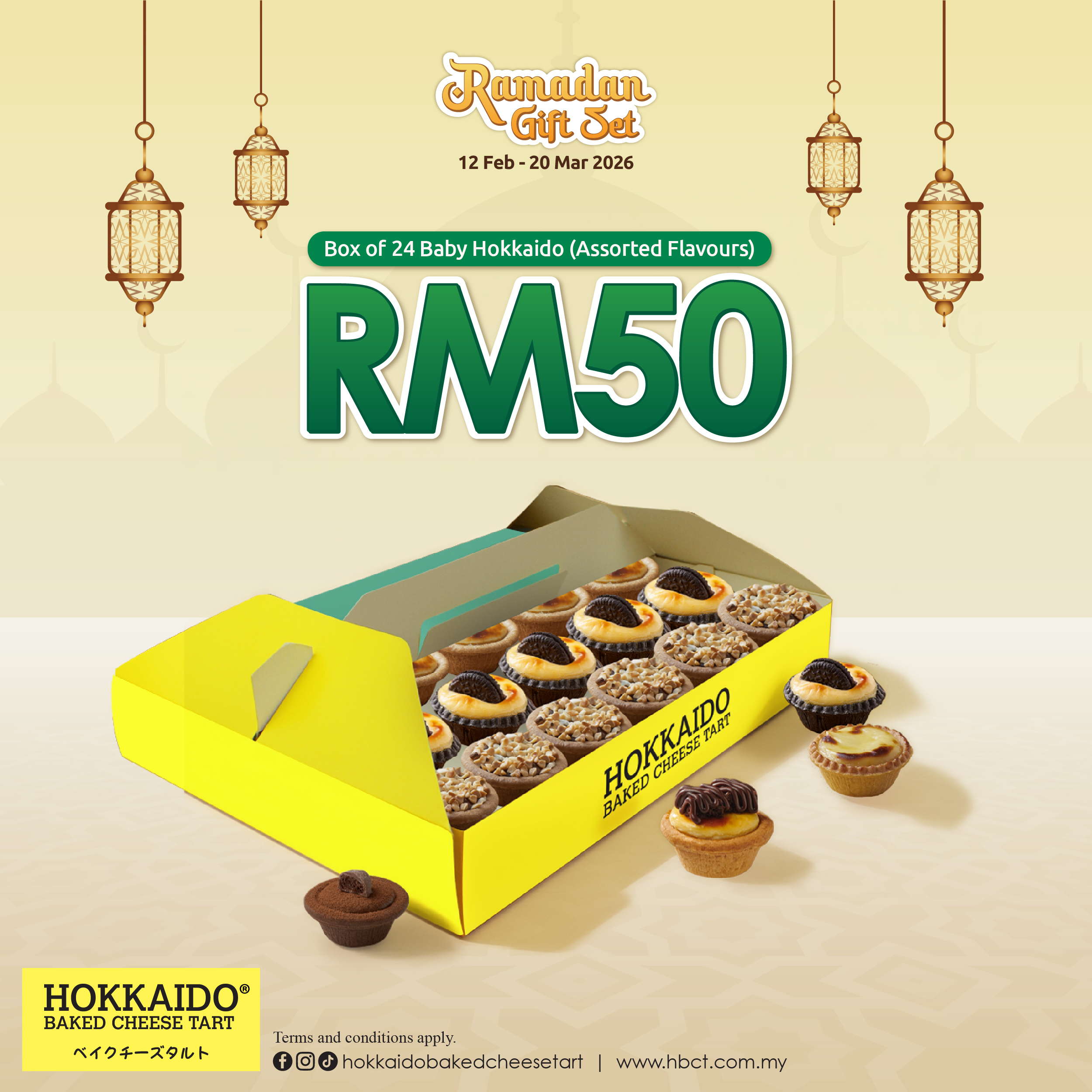 - Box of 24 Baby Hokkaido available in all Hokkaido Baked Cheese Tart outlets in Peninsular Malaysia, excluding Johor.