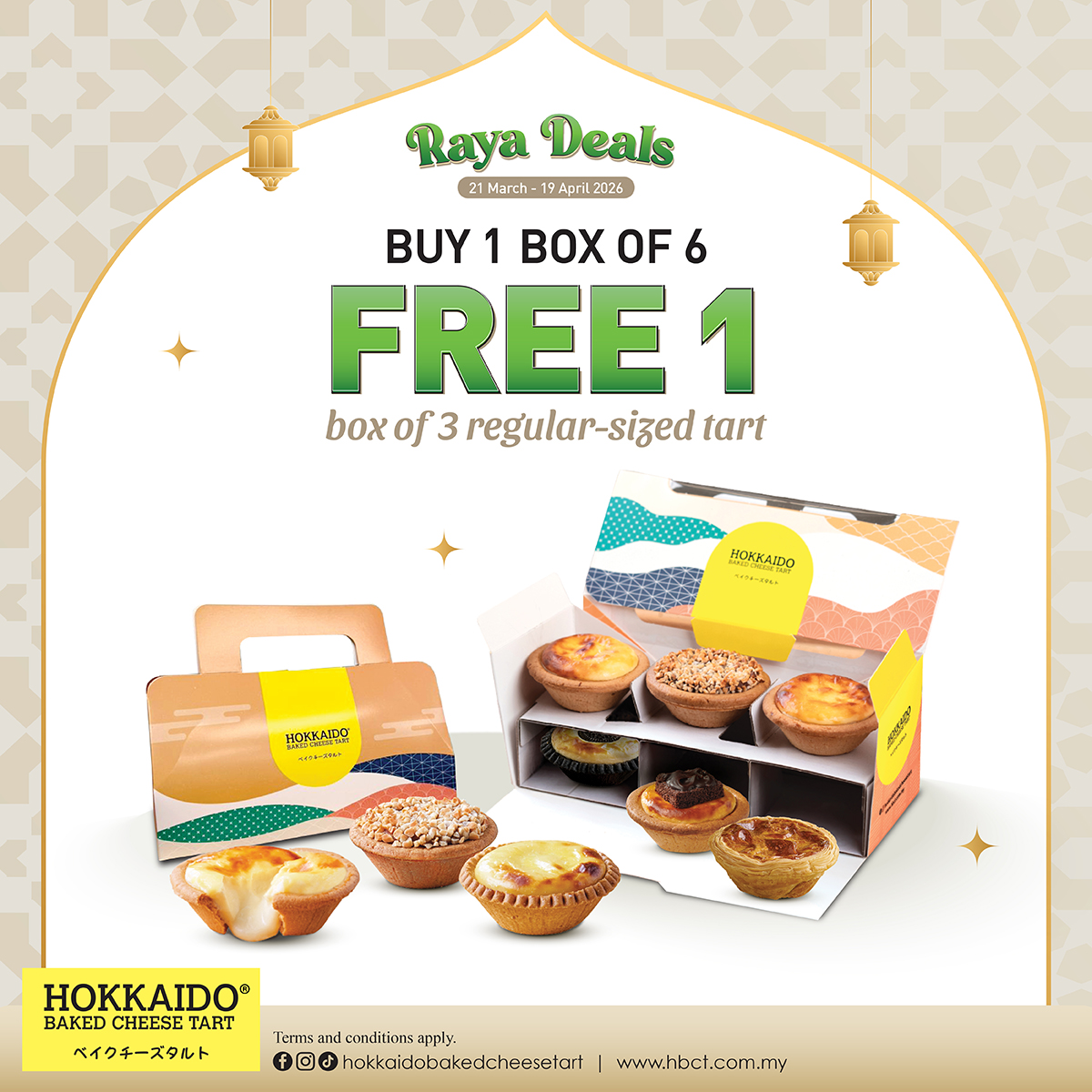 • Valid at all Hokkaido Baked Cheese Tart outlets in Peninsular Malaysia.