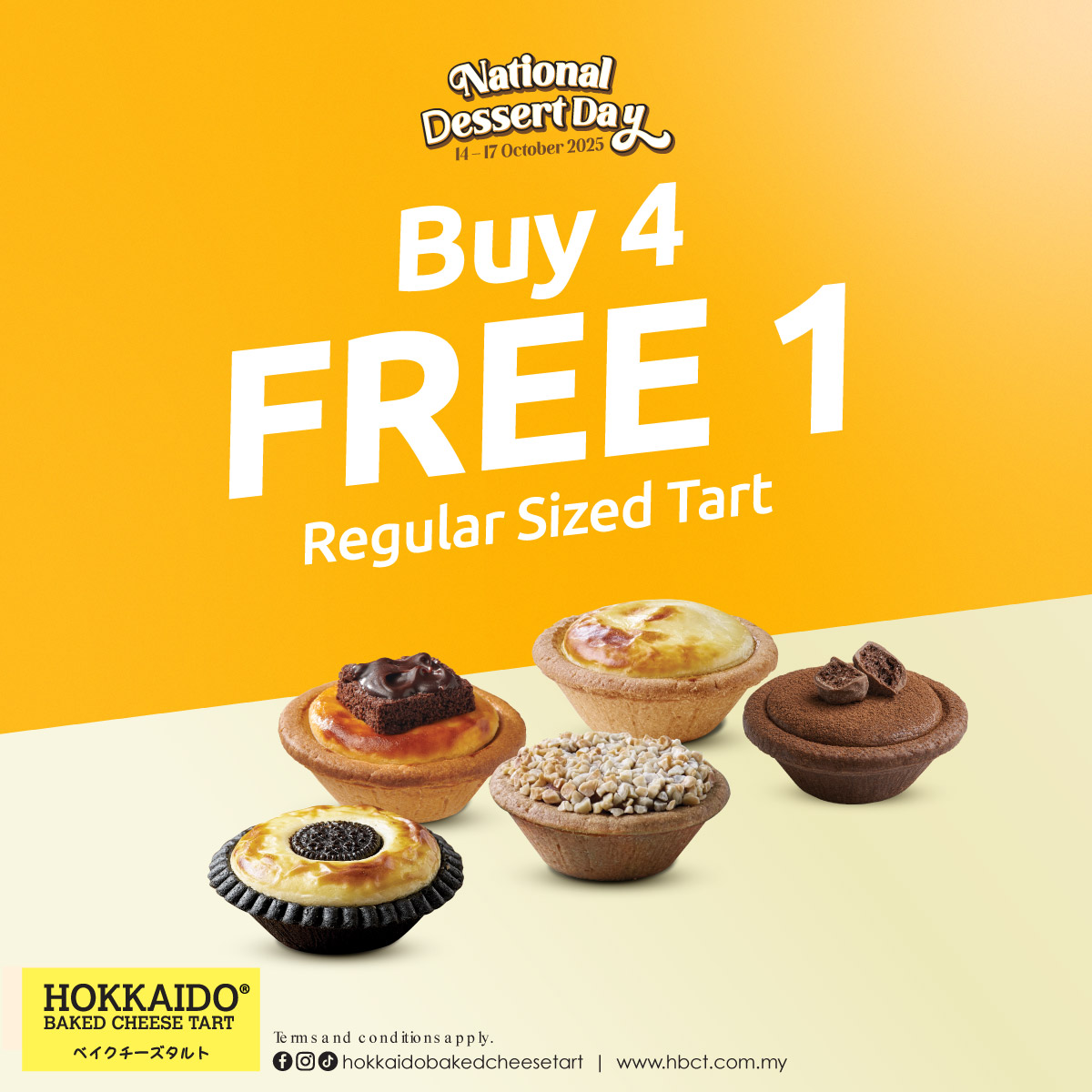 - Valid at all Hokkaido Baked Cheese Tart outlets in Peninsular Malaysia.